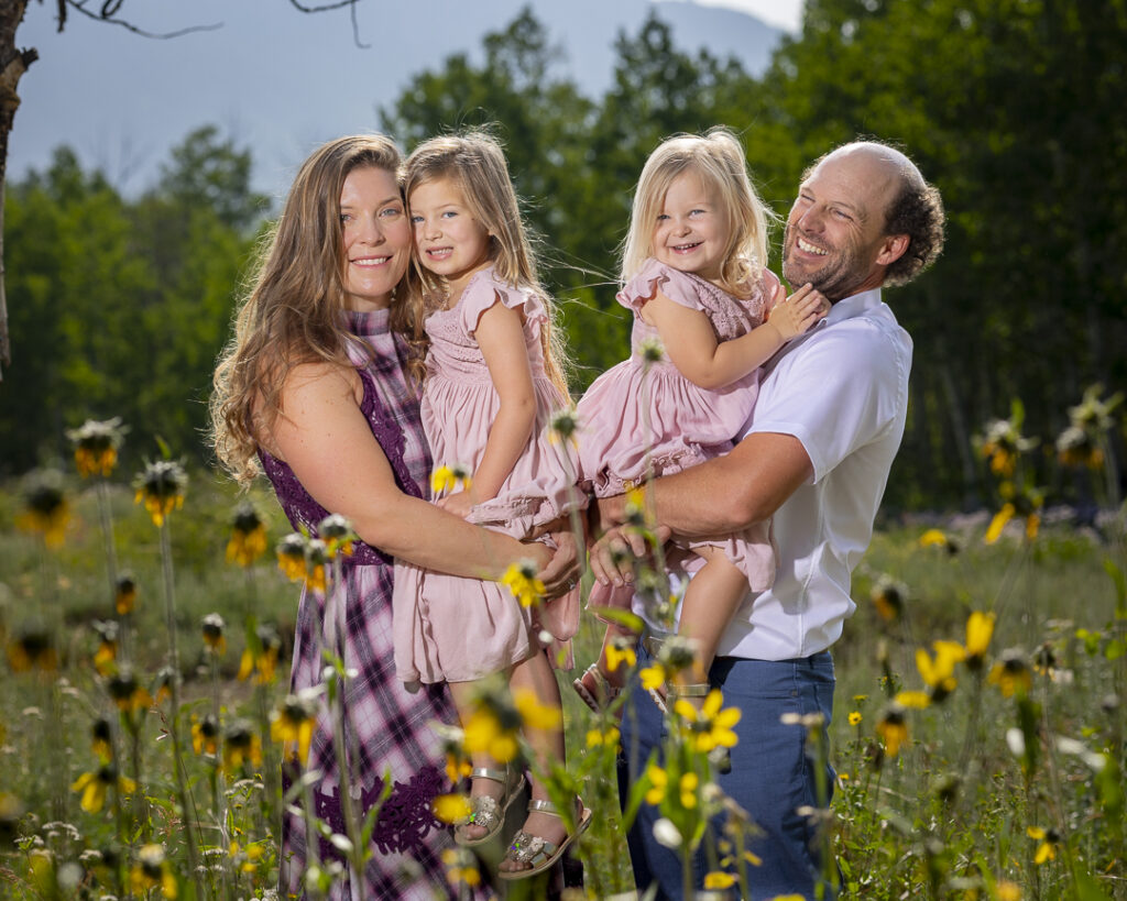 Crested Butte is one of the most beautiful places for family photos. The lupine and sunflower fields, snow-capped mountain peaks, pine forests, lakes and rivers, and golden aspen groves create endless options for stunning backdrops.