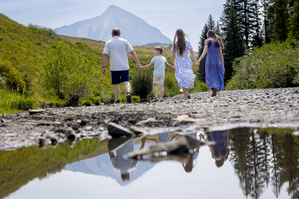 The Slate River area offers soft riverbanks, views of Mt. Crested Butte, and wide-open meadows. It’s perfect for candid, playful sessions with room for kids to run.