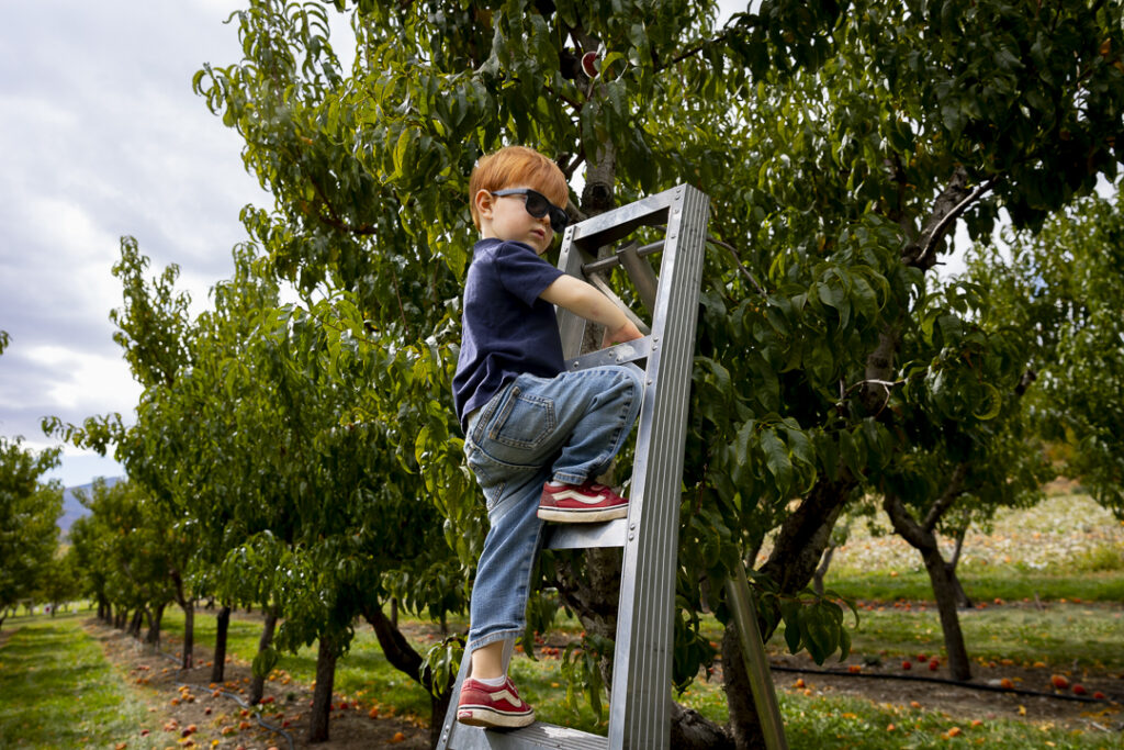 Peach picking and apple picking are some of the best outdoor activities to do with a toddler.