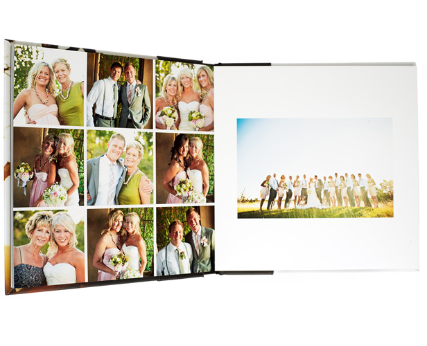 Professional products and albums are a perfect way to encapsulate your wedding day. Albums can cost anywhere from $50 at Shutterfly to $9000 from professional printing companies. High-end alums come in a range of sizes and have a variety of beautiful fabric options for the cover including embossed text or metal inlays, thick pages that lay flat to showcase large panoramic photos, photographic paper that will last the test of time and a personalized box to keep it safe in. Products can include canvas and metal prints for your walls, album blocks and photo boxes for your bookshelf and parent gifts. It is important these products are printed by professionals for durability and quality.